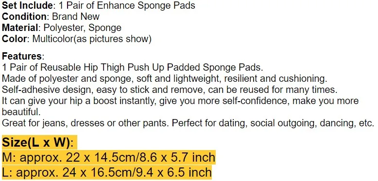 | Model Number | 1 Pair Breathable Hip Thigh Sponge Pads |